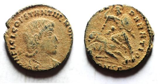 AS FOUND. CONSTANTIUS II AE 3. FALLEN HORSEMAN