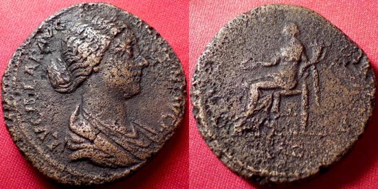 LUCILLA AE sestertius. Rome, 164-167 AD. LVCILLAE AVG ANTONINI AVG F, draped bust right. Reverse - CONCORDIA, Concordia seated left, holding patera and double cornucopiae; S-C across fields. RIC 1732 (Aurelius). 32mm, 25.2g.