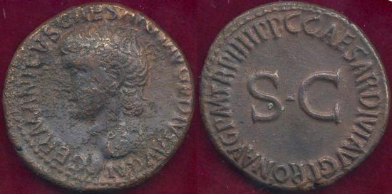 AE 28mm, 12.6 grams AS O:GERMANICUS CAESAR TI AVGVST F DIVI AVG N, bust Germanicus facing left R:C CAESAR DIVI AVG PRON AVG PM TRPIIII PP S-C at center good portrait & exceptionally nice reverse