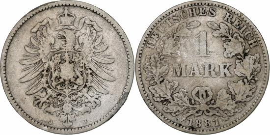 | | GERMANY - EMPIRE, Wilhelm I, Mark, 1881, Hambourg, Silver, , KM:7 | | | Denomination within wreath, Crowned imperial eagle | | FEATURES |