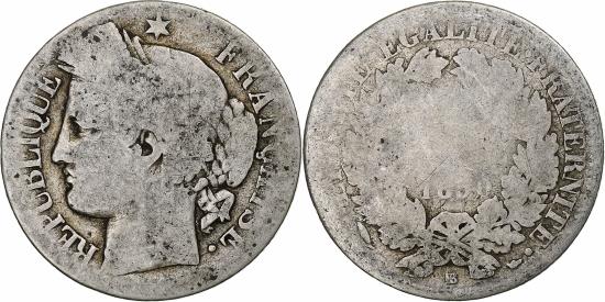 | | France, Franc, Cérès, 1850, Strasbourg, Silver, , Gadoury:457, KM:759.2 | | | Cérès, Liberty head left, Denomination within wreath | | FEATURES |