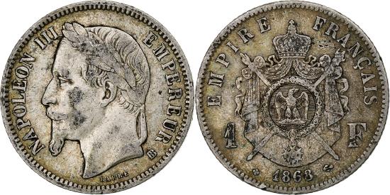 | | France, Napoleon III, Franc, 1868, Strasbourg, grand BB, Silver, | | | FEATURES |