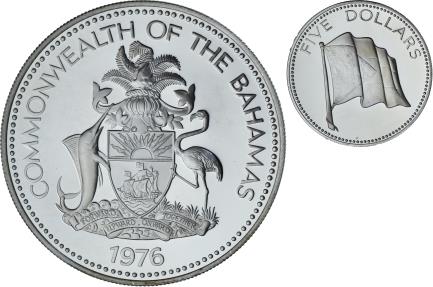 | | Bahamas, 5 Dollars, 1976, Franklin Mint, Proof, Silver, , KM:67a | | | FEATURES |