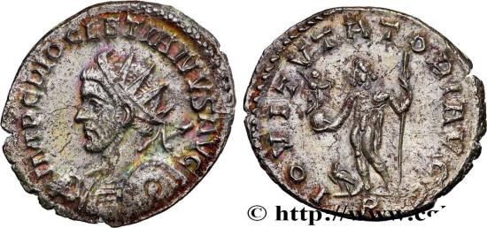 DIOCLETIAN Augustus Aurelianus 287-289 Lyon R3 billon Obverse : IMP C DIOCLETIANVS AVG Buste radié et cuirassé de Dioclétien à gauche, vu de trois quarts en avant, tenant de la main droite, un sceptre qui repose sur l’épaule et tenant de la main gauche un bouclier (F1 Reverse : IOVI TVTATORI AVGG/ -|-// P Jupiter nu debout à gauche, le manteau sur l’épaule, tenant un globe nicéphore de la main droite et un sceptre long de la main gauche ; à ses pieds, un aigle debout à gauche, tournant la tête à droite Commentary : Très bel exemplaire sur un flan idéalement centré des deux côtés. Joli buste de Dioclétien ainsi qu’un revers finement détaillé. Patine grise avec de légers reflets dorés