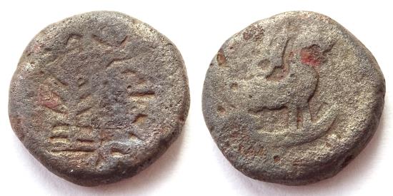 INDIA, TRIBAL: Agacha janapada copper coin. Lion type. Rare.