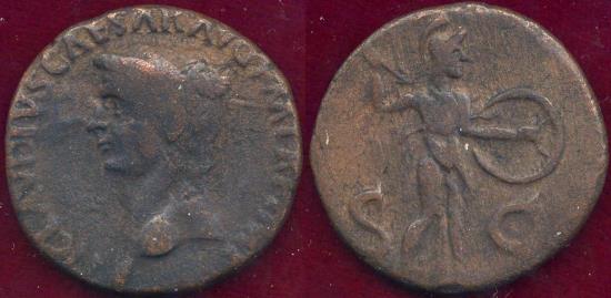 Nice Portrait facing left AE AS 26mm 9.4 grams O:TI CLAVDIVS CAESAR AVG PM TRP IMP bust of Claudius facing left R:Minerva advancing right brandishing a spear & holding a shield S-C