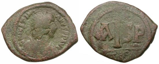 Title: *Sear 175* Byzantine Empire. Justinian I (AD 527-562) Æ 16 Nummi