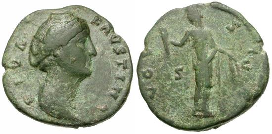 Title: Diva Faustina I (died AD 141) Æ As / Ceres