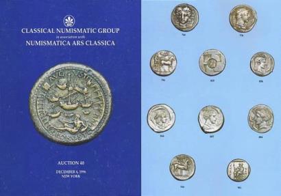 Classical Numismatic Group, Inc., Lancaster, PA. Public & Mail Bid Sale, December 4, 1996. 266 pages, 2002 lots. James Fox Collection of Roman & Byzantine; Myron Stepath Collection of Roman; European Collection from Magna Graecia. Very fine condition, no PRL. $20.00 at CNG. One of better earlier CNG sales.