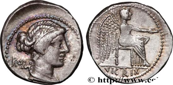 VIC(TR)IX en monogramme à lexergue Victoria (la Victoire) assise à droite, les ailes déployées, tenant une patère de la main droite et une palme de la main gauche