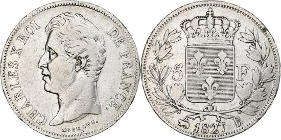 | | France, Louis-Philippe, 5 Francs, 1827, Rouen, Silver, , Gadoury:644 | | | Head to the left., Crowned shield within an olive wreath., Cleaned. | | FEATURES |