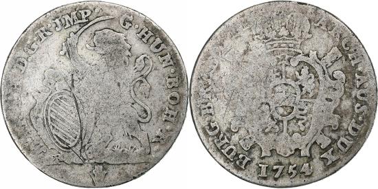 | Austrian Netherlands, Maria Theresa, Escalin, 1754, Anvers, Silver, |