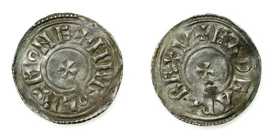 Eadgar AD 959-975 Silver Penny Pre Reform coinage before AD 973 Small Cross each side HEROLF MONE S1134, 20mm; 1.29g Comes with previous handwritten label. Eadgar (959-975): Known as ‘The Peaceful’ – Eadgar’s reign flies in stark contrast to that of his older brother. His reign was indeed stable and peaceable – reflecting to some the very pinnacle of the 10th century English state. Overthrowing many social norms, he was not crowned until 973 – perhaps keen to make a political statement in celebrating the very peak of his power and authority. Uniquely, his third wife Ælfthryth was anointed as Queen alongside him – an unprecedented occurrence. For numismatists his reign is of acute interest – as he instigated a major reform of both weights and measures alongside with the coinage itself. From 972, coins were no longer struck regionally – instead, new types using standardised, centrally produced dies would be issued every few years and the old money called in for re-minting. The use of non-portrait designs was dropped totally, every subsequent coin struck in England bearing the image of the King on its obverse face. His premature death in 975 marked the beginning of a decline which England would take decades to emerge from. |