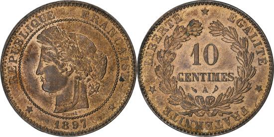 | | France, 10 Centimes, Cérès, 1897, Paris, Bronze, , Gadoury:265a | | | FEATURES |