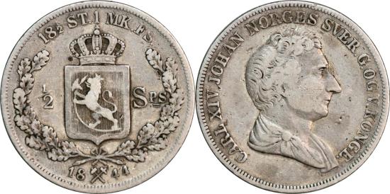 Norway, 1/2 speciedaler dated 1844, struck under King Carl XIV Johan. Fine condition. NM 29; KM 312. 14,2 g. Protocol no. 5413
