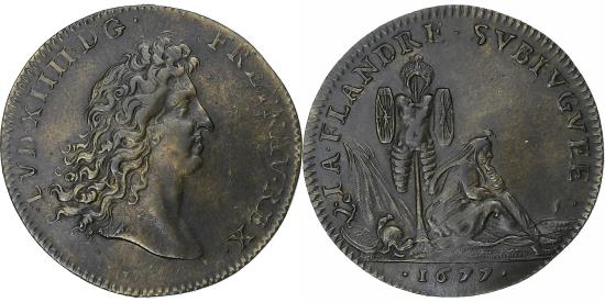 | France, Token, Louis XIV, La Flandre Subjuguée, 1677, Copper, |