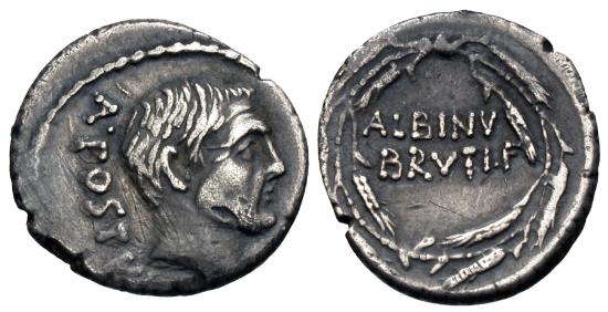 Roman Imperatorial. Albinus Bruti f. AR Denarius. Ex Coin Galleries, 1990.