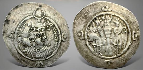 flanking flames. Göbl type II/1; Saeedi 295. Good very fine, nice cabinet toning. Rare. Note: Ardashir III was son of Kavadh II. He was raised to the