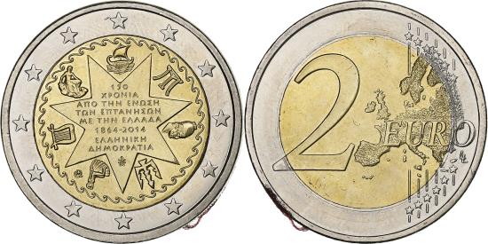 | | Greece, 2 Euro, 150ème anniversaire de l'Union des îles Ioniennes, 2014, | | | FEATURES |
