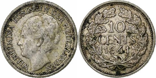 | Netherlands, Wilhelmina I, 10 Cents, 1941, Silver, , KM:163 |