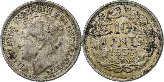 | Coin, Netherlands, Wilhelmina I, 10 Cents, 1937, , Silver, KM:163 |