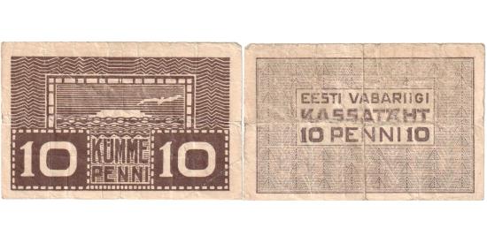 | | Estonia, 10 Penni, 1919, KM:40b, EF(40-45) | | | Brown. Printer: Riigi Trkikoda, Tallinn., Ship at center. | | FEATURES |