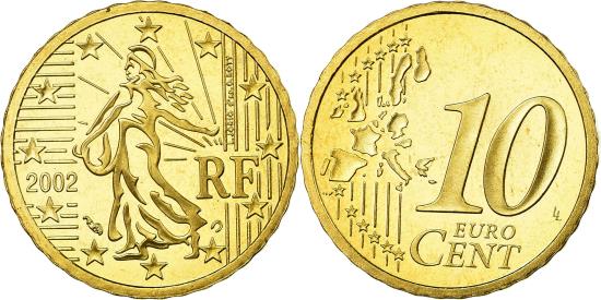 | | France, 10 Euro Cent, 2002, Proof, , Brass, KM:1285 | | | The seed sower divides date and RF, Denomination and map, Laurent Jorb | | FEATURES |