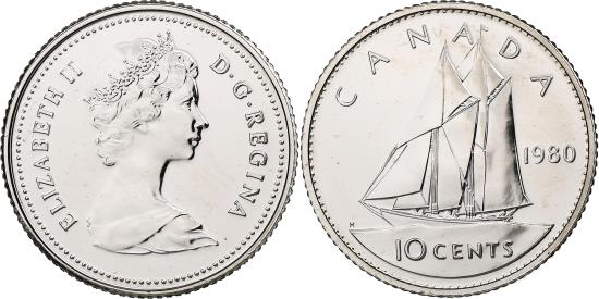 | | Canada, Elizabeth II, 10 Cents, 1980, Ottawa, Proof, Nickel, , KM:77.2 | | | FEATURES |