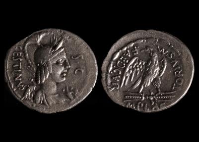 M. Plaetorius Cestianus Ar Denarius, 67 BC. CESTIANVS, before winged bust of Vacuna, wearing crested helmet r. quiver and bow on shoulder, cornucopiae below chin, S C before, Rev. M PLAETORIVS M F AED CVR, eagle on thunderbolt head l. Cr409/1; Syd 809; Plaetoria 4. 3.6g, 20mm |