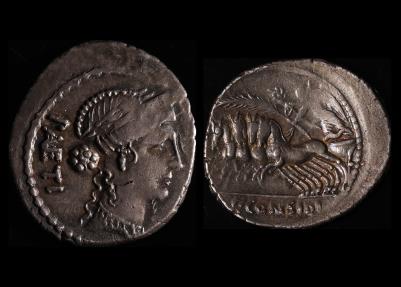 C. Considius Paetus Ar Denarius, 45 BC. PAETI behind, laureate, diademed head of Venus r. Rev., C CONSIDI in ex., Victory driving quadriga l. Considia 6; Sear5 456; Cr465/3; Syd 992.