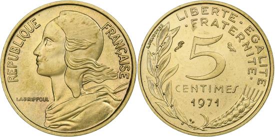 | | France, 5 Centimes, Marianne, 1971, Paris, Aluminum-Bronze, , Gadoury:175 | | | FEATURES |