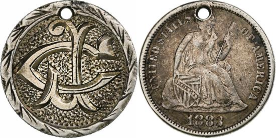 | United States, Love Token, Seated Liberty, 1883, Silver, Collection Térisse |