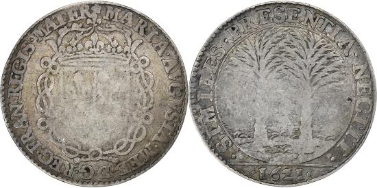 | | France, Token, Régence de Marie de Médicis, 1621, Silver, | | | Shield of arms of Marie de Médicis, Two large palm trees intertwining their palms., MARIA. AUGUSTA. MED. D. G. REG. FRAN. REGIS. MATER., SIMILES. PRESENTIA. NECTIT // 1621. | | FEATURES |