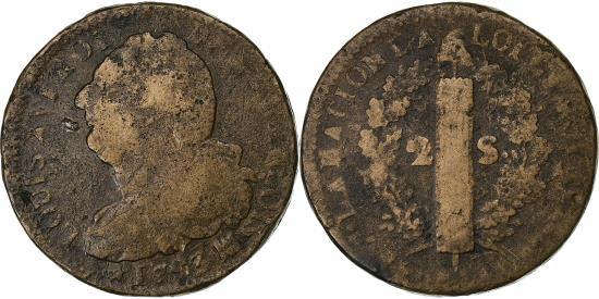 | | France, Louis XVI, 2 Sols François, 1793 / AN 5, Marseille, Métal de cloche | | | FEATURES |