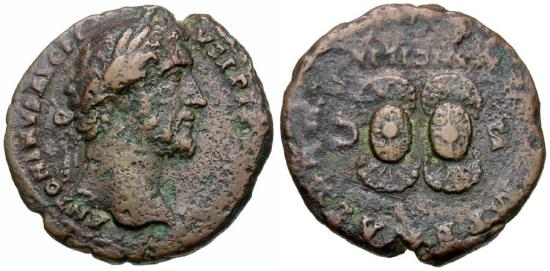 Antoninus Pius (AD 138-161) Æ As / Ancilia