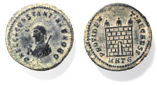 CONSTANTINE II AE FOLLIS. CAMP GATE