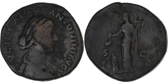| | Lucilla, Sestertius, 164-169, Rome, Bronze, , RIC:1779 | | | Vesta, veiled, draped, standing left by altar, holding simpulum in right hand and palladium in left hand, LVCILLAE AVG ANTONINI AVG F, VESTA S C | | FEATURES |