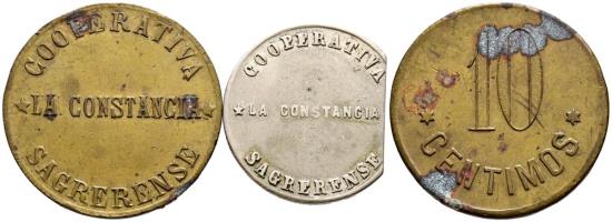 BARCELONA. Tokens. 10 Cents and 1 Peseta. Sagrerense Cooperative. Good Very Fine.