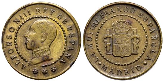 MADRID. The Franco-Spanish Mutual. (Ae. 1.64g/18mm). Madrid. Reign of Alfonso XII (1885-1931). Good Very Fine.