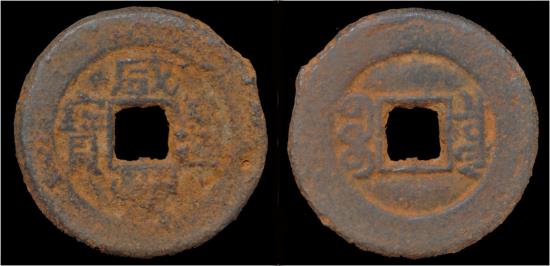 Iron coins were issued by Xian Feng during the Taiping rebellion, because the war against the rebels caused a shortage of copper.