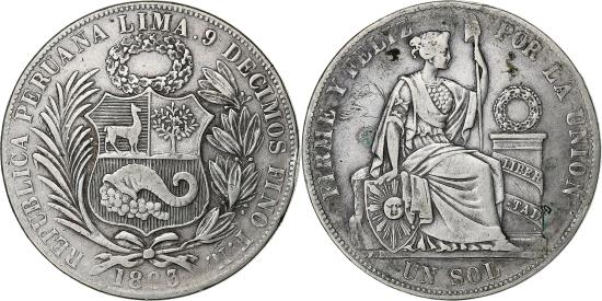 | | Peru, 1 Sol, 1883, Santiago, Silver, | | | FEATURES |