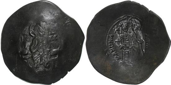 | | Manuel I Comnenus, Aspron trachy, 1143-1180, Constantinople, Billon, | | | Nimbate Christ, bearded, seated facing on throne, wearing pallium and colobium; in left, book of Gospels., The Virgin, nimbate (on right), and Manuel (on left), both standing facing, the Virgin wears pallium annd maphorium, and with Her right hand crowns the emperor, who wears divitsion and chlamys, and holds labarum and globe cruciger. Between their heads, M., IC - XC, MANOVHΛ ΔECΠOTHC | | FEATURES |