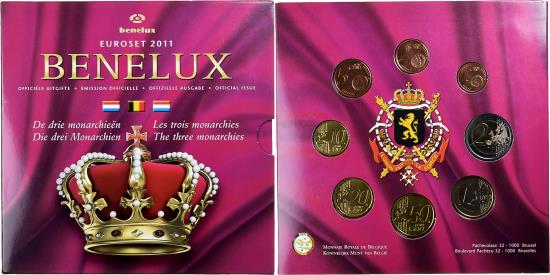 | Benelux, 3x 1 ct. - 2€ + Token, Les 3 monarchies, 2011, |