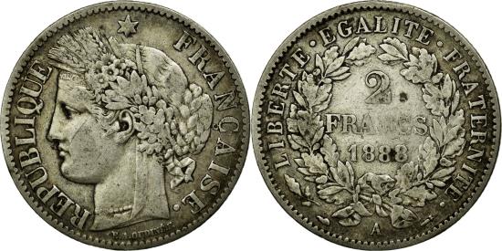| | Coin, France, Cérès, 2 Francs, 1888, Paris, , Silver, KM:817.1 | | | Cérès, Laureate head left, Denomination within wreath | | FEATURES |