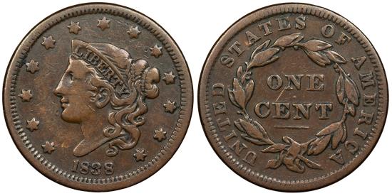 1838 1 Cent Coronet