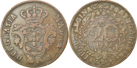 | | Coin, Azores, 20 Reis, 1795, , Copper, KM:3 | | | Crowned arms within cartouche, Value and date within wreath, Overstrikes on Portuguese 10 Reis, KM#306, exist., MARIA ... | | FEATURES |