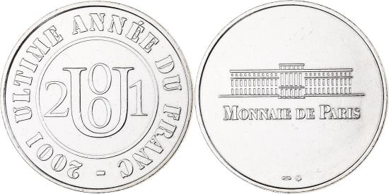 | France, Token, Paris - Hotel de la Monnaie - Ultime année du Franc, 2001 |