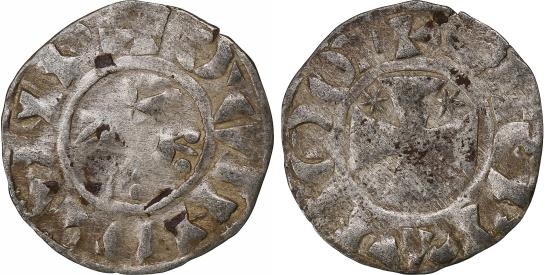 | | County of Penthièvre, Bretagne, Étienne Ier, Denier, 1093-1138, Lamballe | | | Head right., Cross with a star in 1st and 2nd quarters., + GVINGAMP, + STEPHAN COM | | FEATURES |