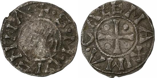 | | Archbishopric of Vienne, Denier, ca. 1200-1250, Vienne, Billon, | | | Bare, bearded head from the profile of Saint Maurice, left., Cross cantoned by four pellets., +. S. M. VIENNA., MAXIMA. GALL | | FEATURES |