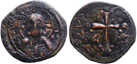 Nicephorus III AE25 follis. Bust of Christ facing / Latin Cross, ornamented